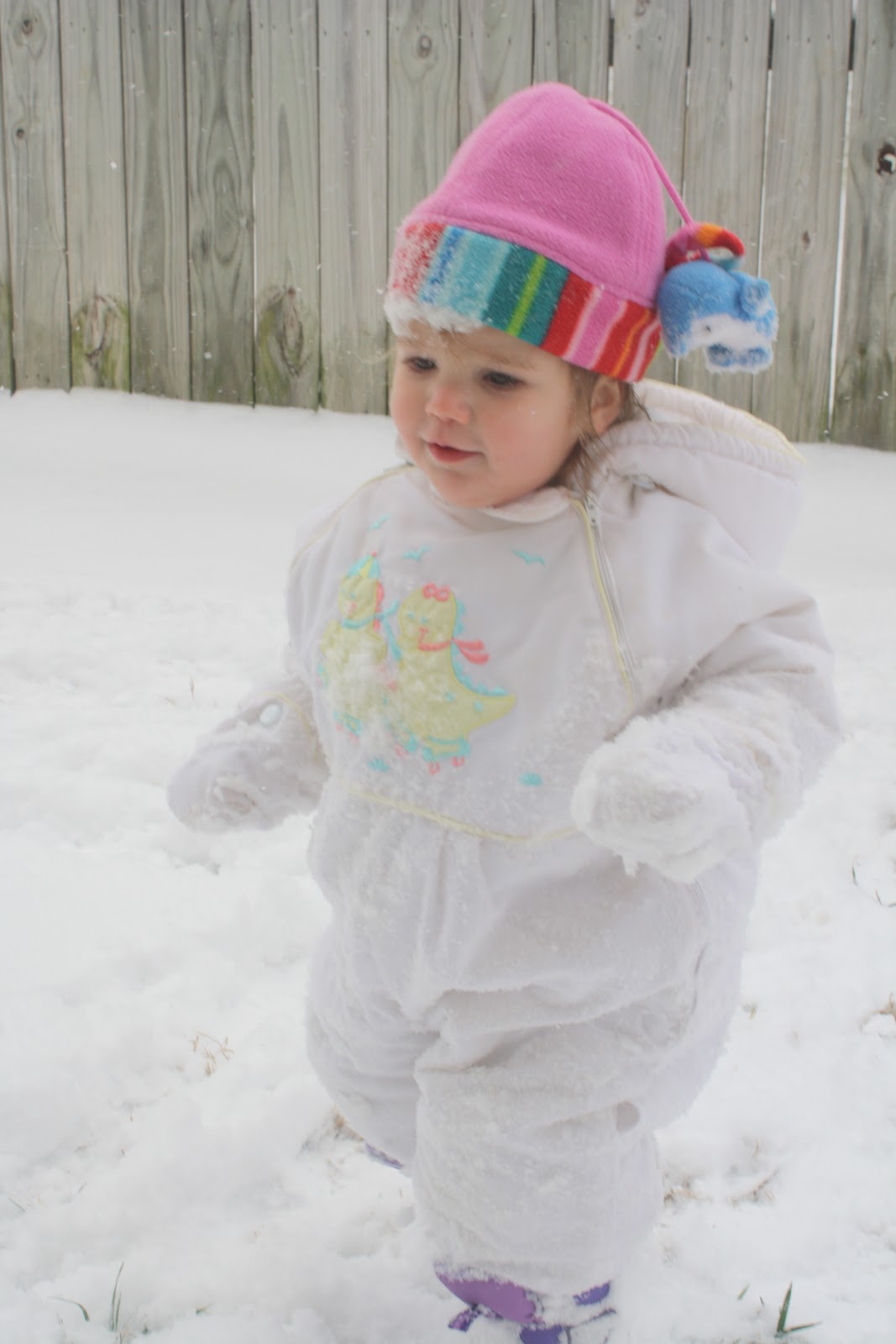 Daphne wouldn't stop moving. She loved it out there and actually really enjoyed putting on all of her snow gear! She cried when I made her come back in after 20 minutes of playing in the freezing cold!